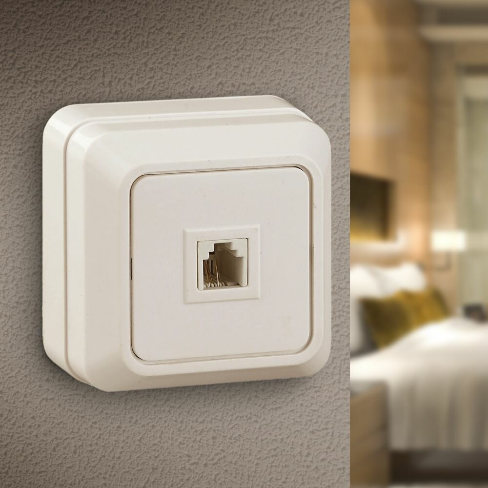 10 цен на Розетка телефонная Intro Quadro 2-302-02 открытой установки 16А 250В слоновая кость