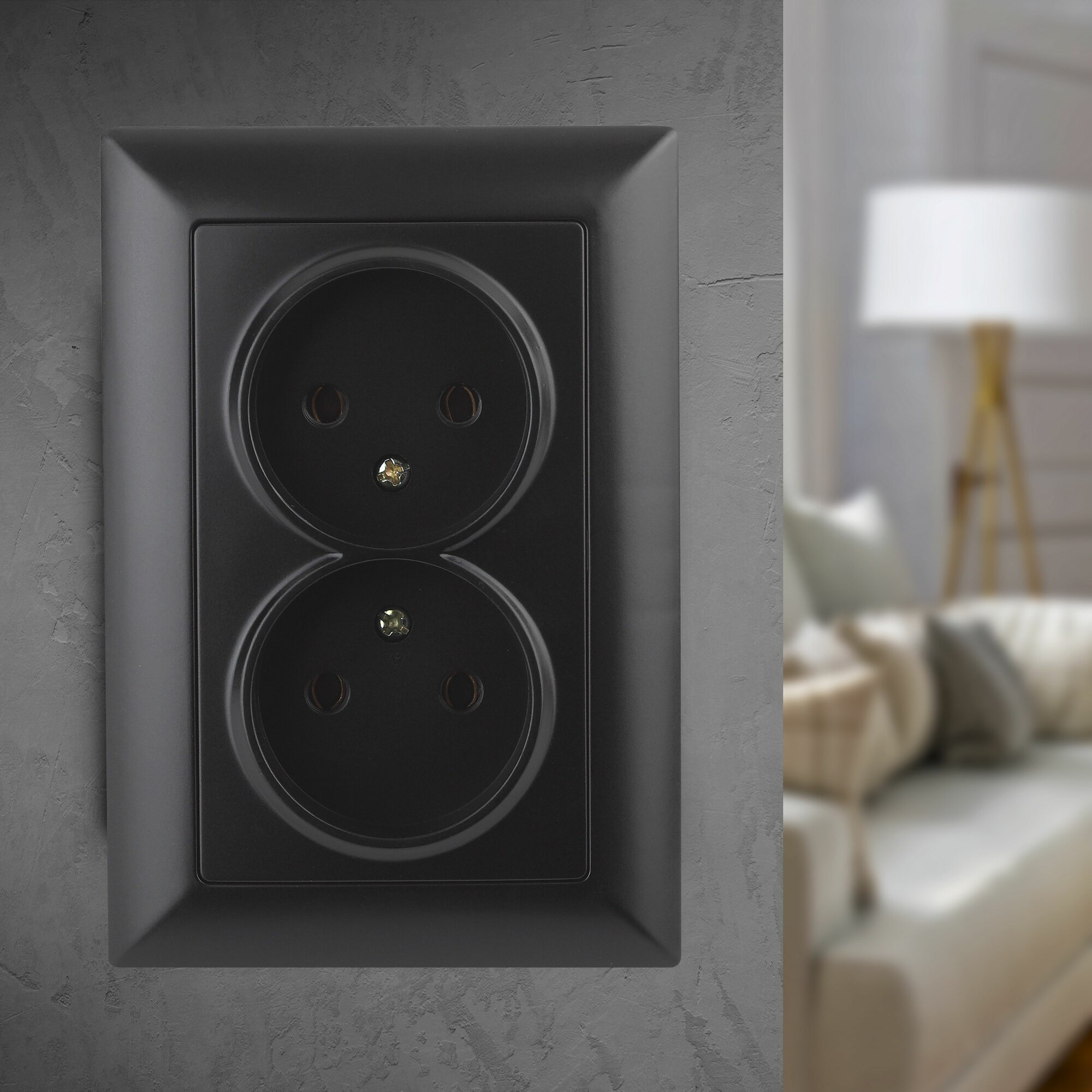 Отзывы на Розетка Intro Solo 4-204-05 без заземления двойная 16А-250В IP20 скрытой установки черный