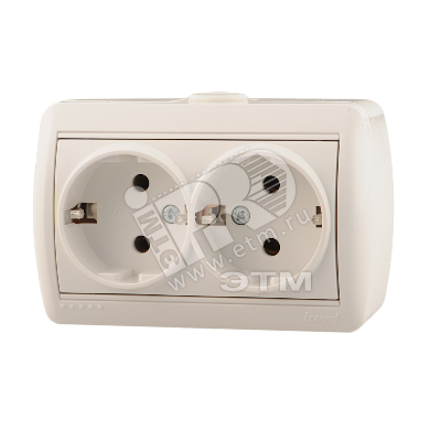 Розетка 2-м ОП Ната 16А IP20 с заземл. керамика бел. LEZARD 710-0200-127