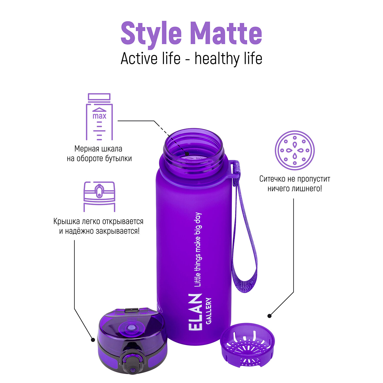 Бутылка для воды спортивная 500 мл 6,5х6,5х23 см Elan Gallery Style Matte лаванда с ситом,с клапаном от протечек,кнопкой для открывания,поильником,ремешком,мерной шкалой подарок детям подругам на Новый год 14 февраля 23 февраля 8 марта