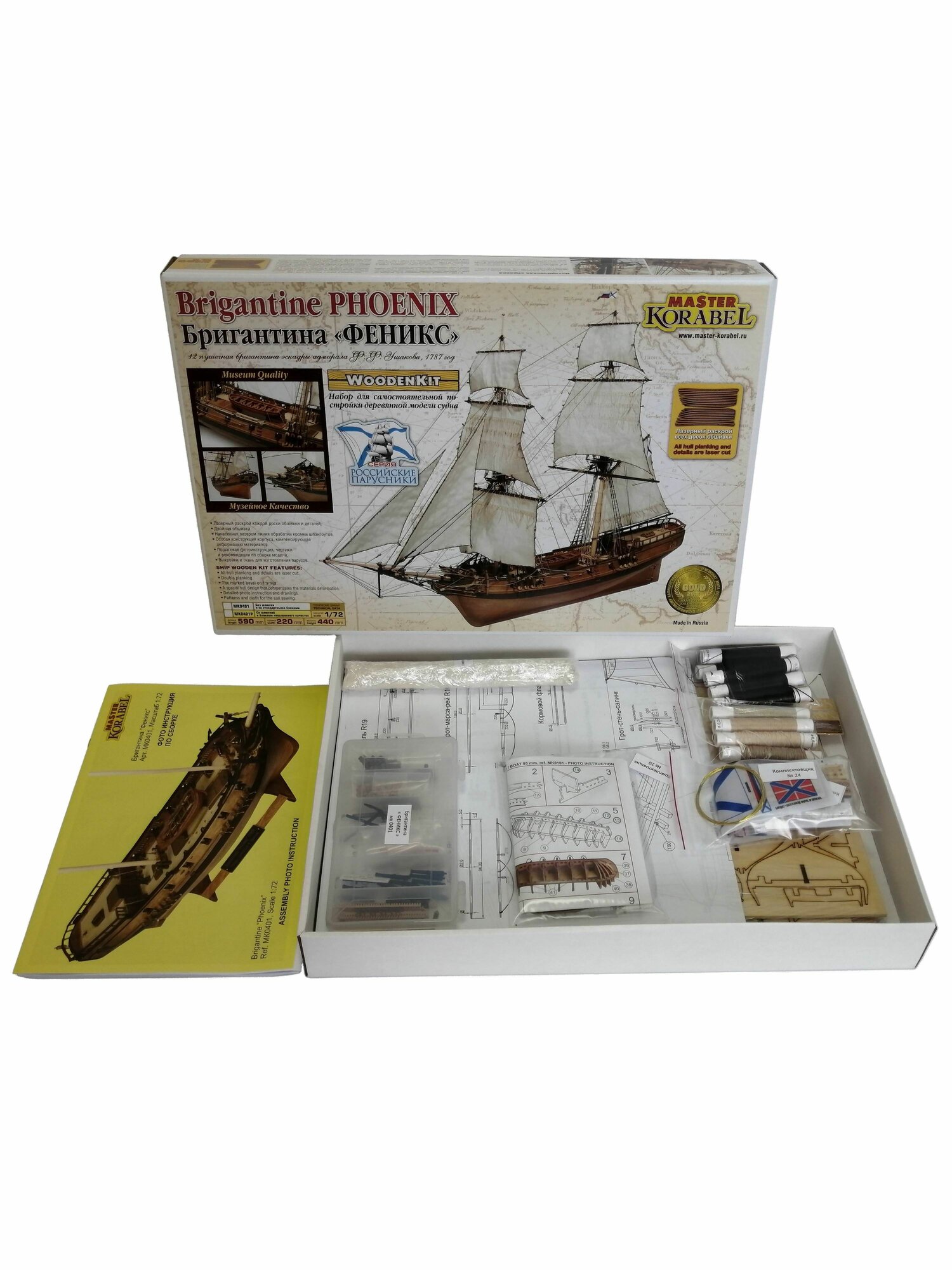 Сборная модель парусного корабля Бригантина Феникс улучшенная, Масштаб 1:72, MK0401-PLUS