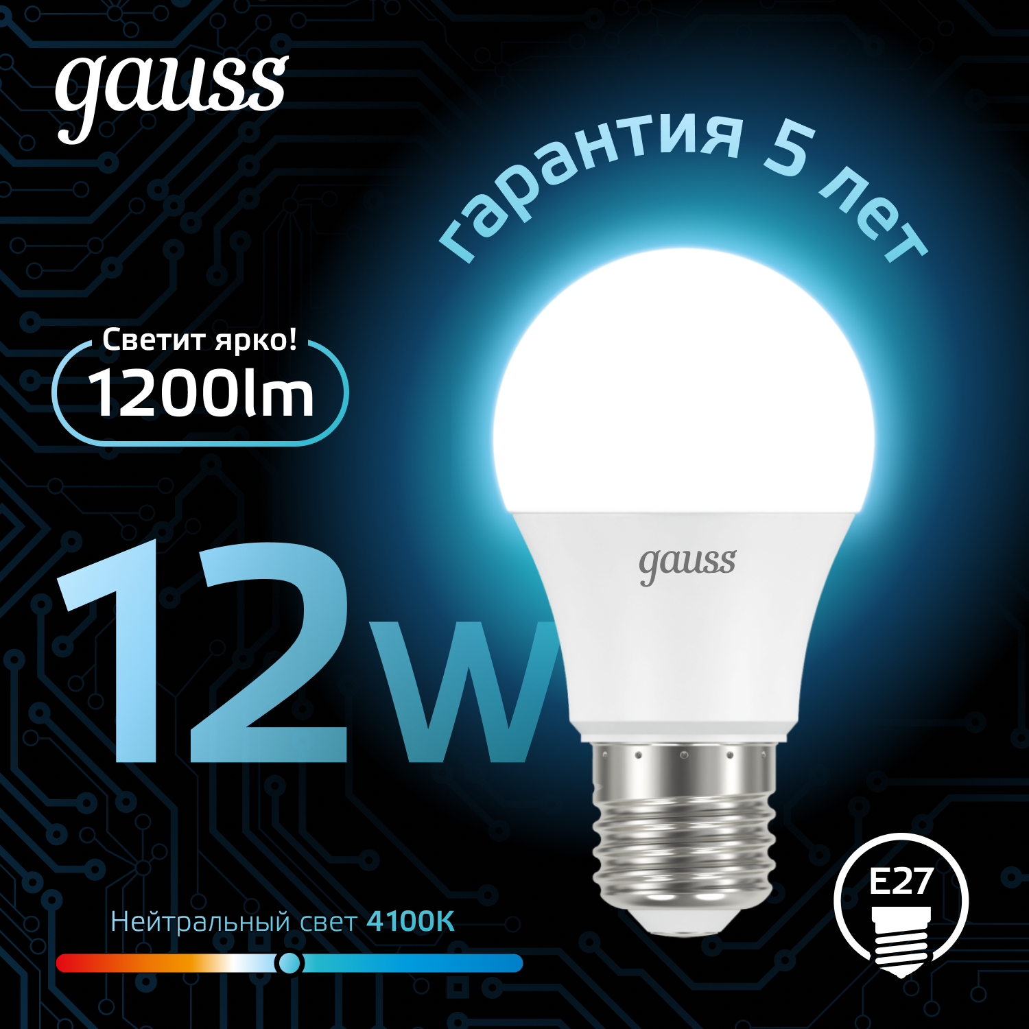 Лампочка светодиодная Е27 Груша 12W нейтр белый свет 4100K упаковка 10 шт. Gauss информация:
