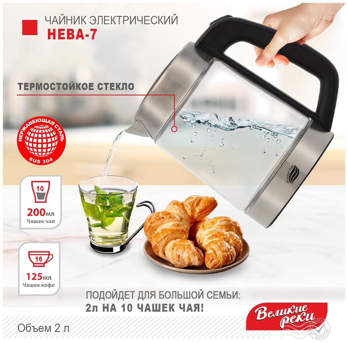 Великие реки Чайник электрический « Нева-7 », стекло, 2.0 л, 1800 Вт
