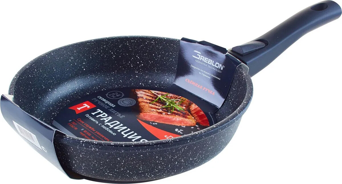 Сковорода Традиция Гранит, съемная ручка, диаметр 24 см