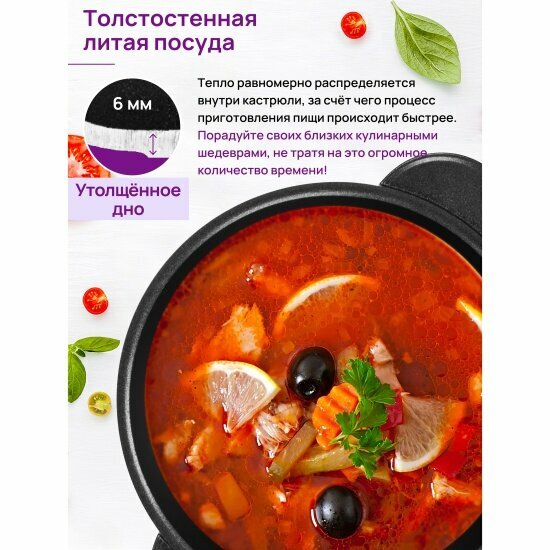 Кастрюля Маруся 7001-26к с индукционным дном со стеклянной крышкой, 5,5 л, цвет черный