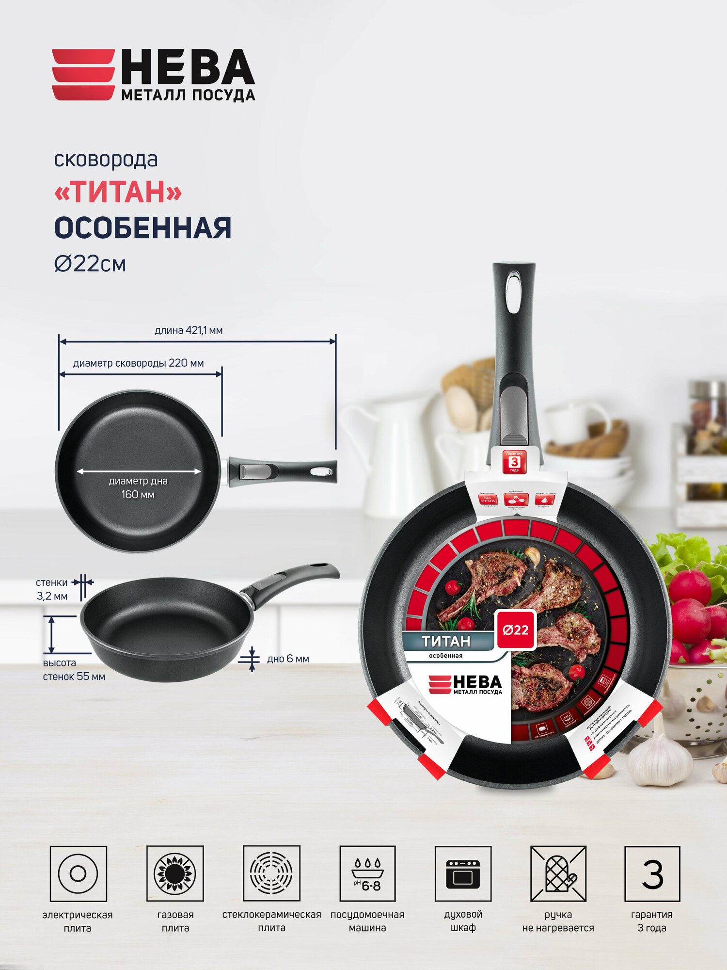 Сковорода Нева Металл Посуда Титан II "Особенная", 22, с/р