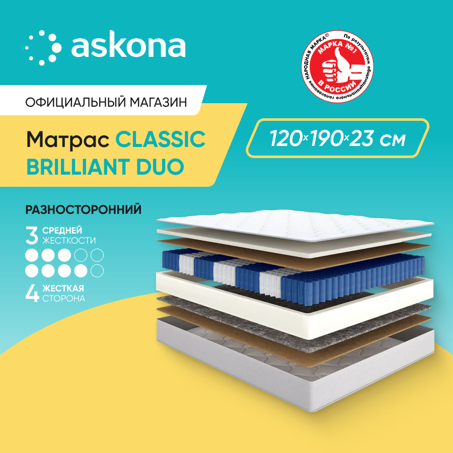 10 цен на Матрас анатомический Askona (Аскона) Classic Brilliant Duo 120х190