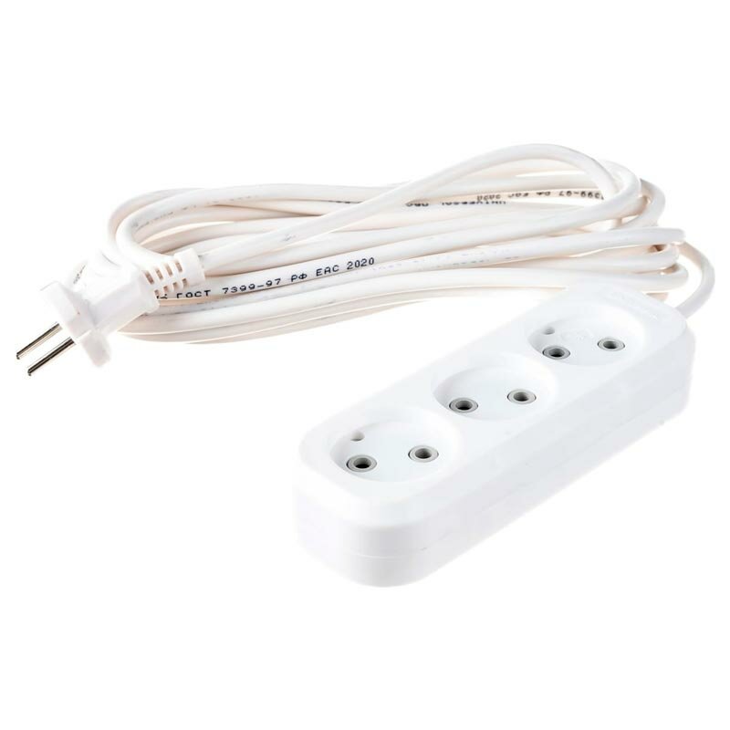 Отзывы на Универсал Удлинитель быт. 3 гнезда, ПВС 2х0,75, 1300-1380Вт, 6А, б/з, полистирол, 5м 639М-05