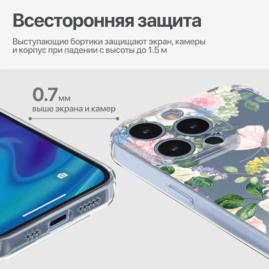 10 цен на Силиконовый чехол на iPhone 13 Pro max / Айфон 13 Про Макс прозрачный с принтом "Butterfly"