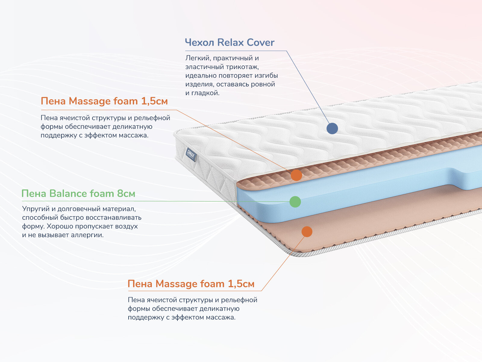 Матрас 140х200 беспружинный с микромассажным эффектом Dimax Relmas Foam Roll 11 950 ₽