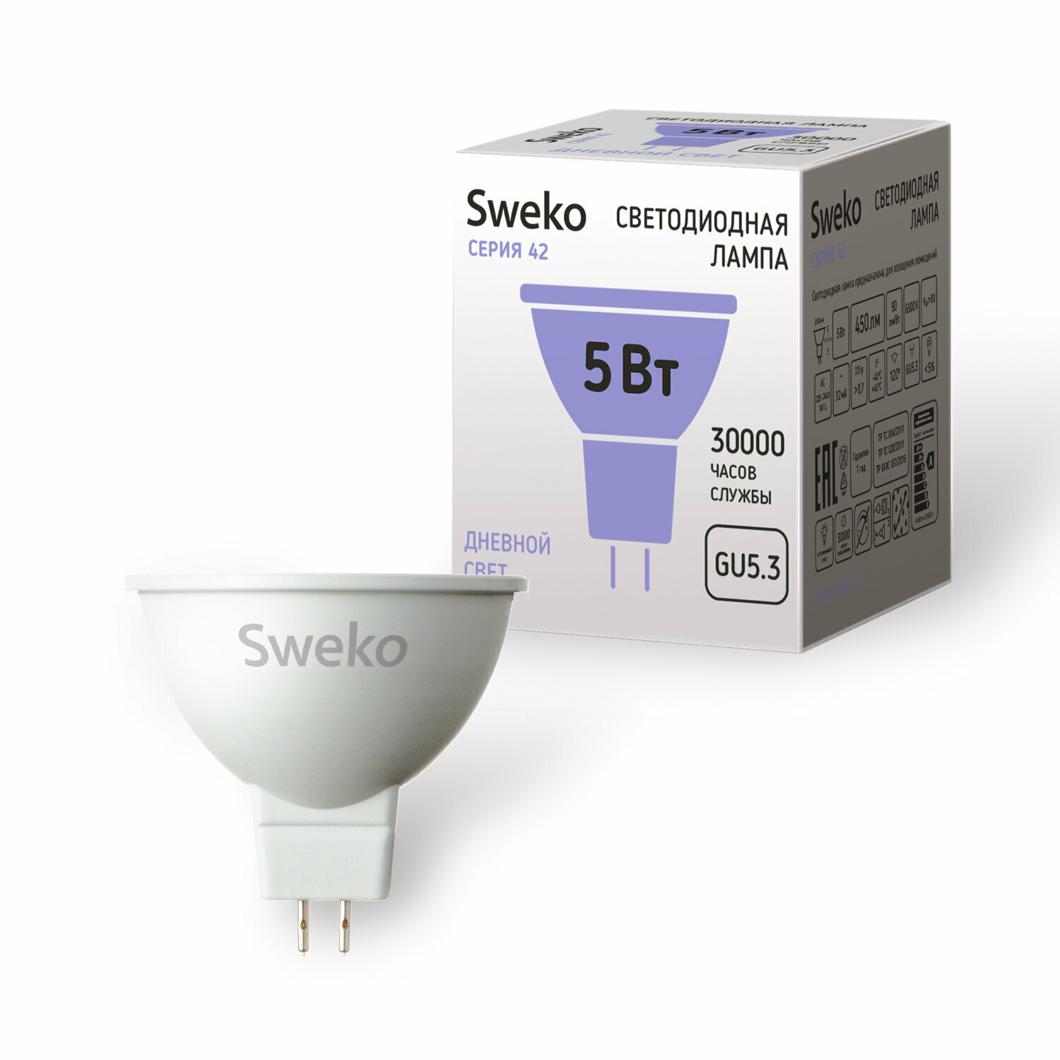 Комплект из 5 штук. Sweko Светодиодная лампа MR16 матов GU5.3 5W(450lm) 6500K 41х50 информация: