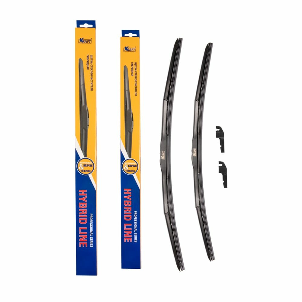 Комплект гибридных щеток стеклоочистителя KRAFT KT 830867, 600/400 мм, 1 адаптер. Уцененный товар