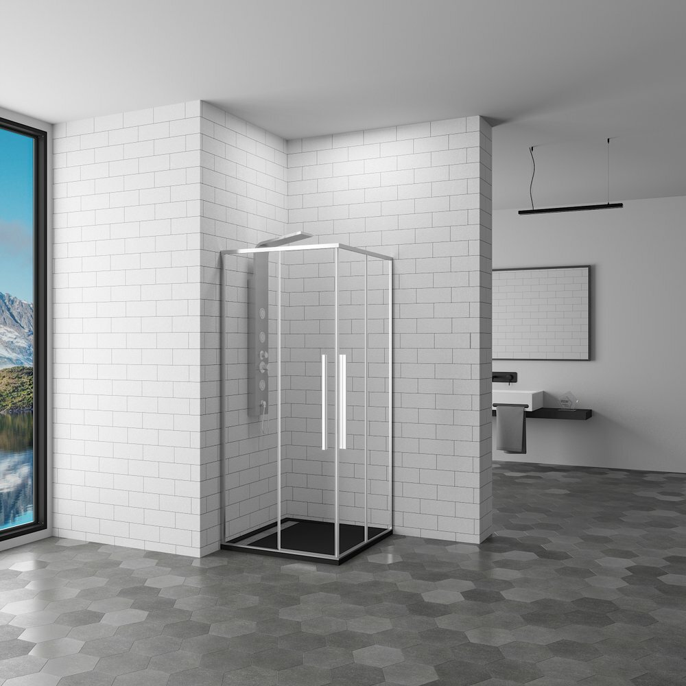 Душевое ограждение уголок SANTREK Iris-CR-900-C-Chrome 900*900*1850 Г-обр. стекло Прозр 6мм, профиль Хром