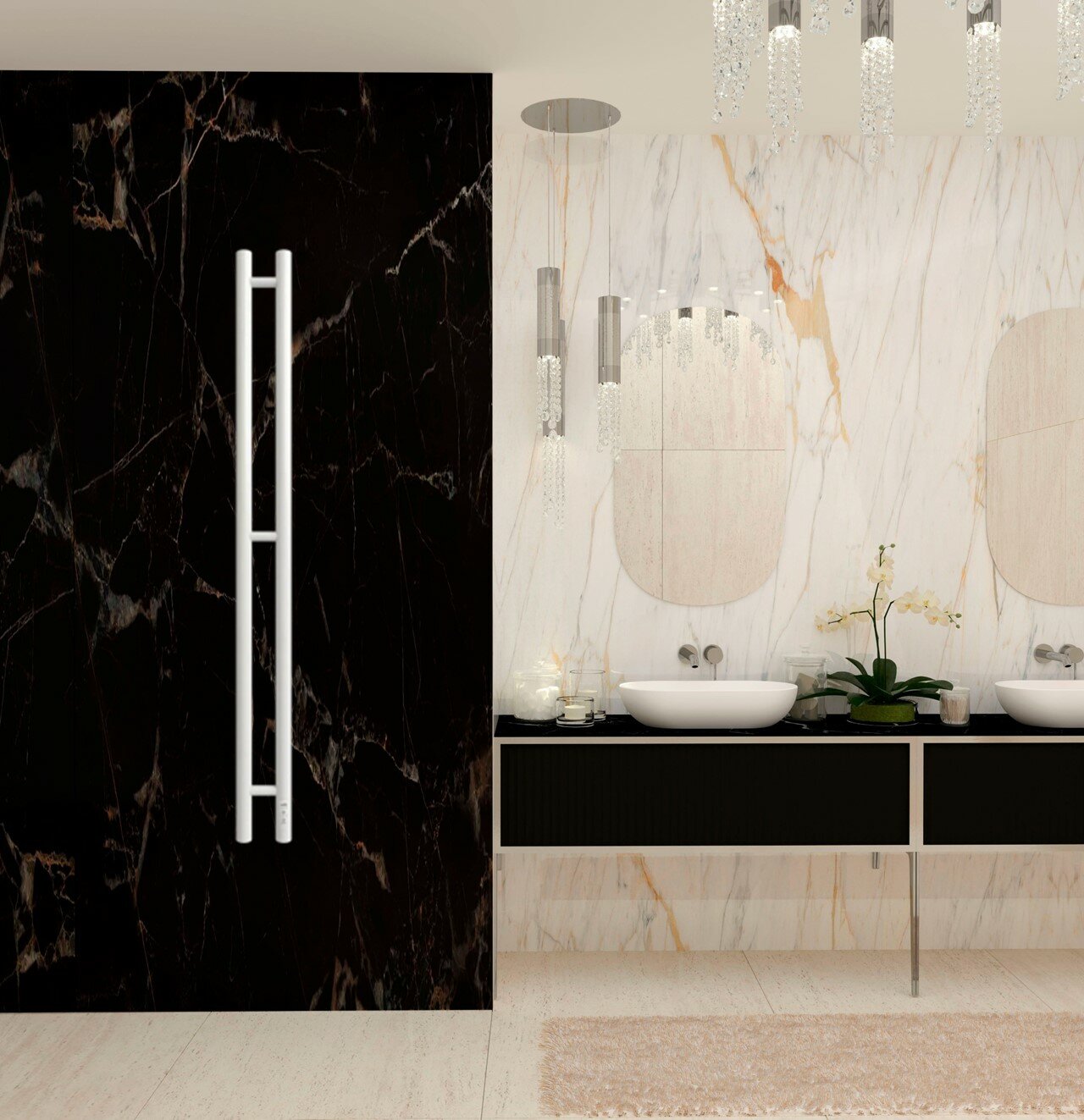 Полотенцесушитель дизайнерский электрический, профильный BAU Stella 8х80, 2 коллектора, 3 крючка (Белый DB-0071)