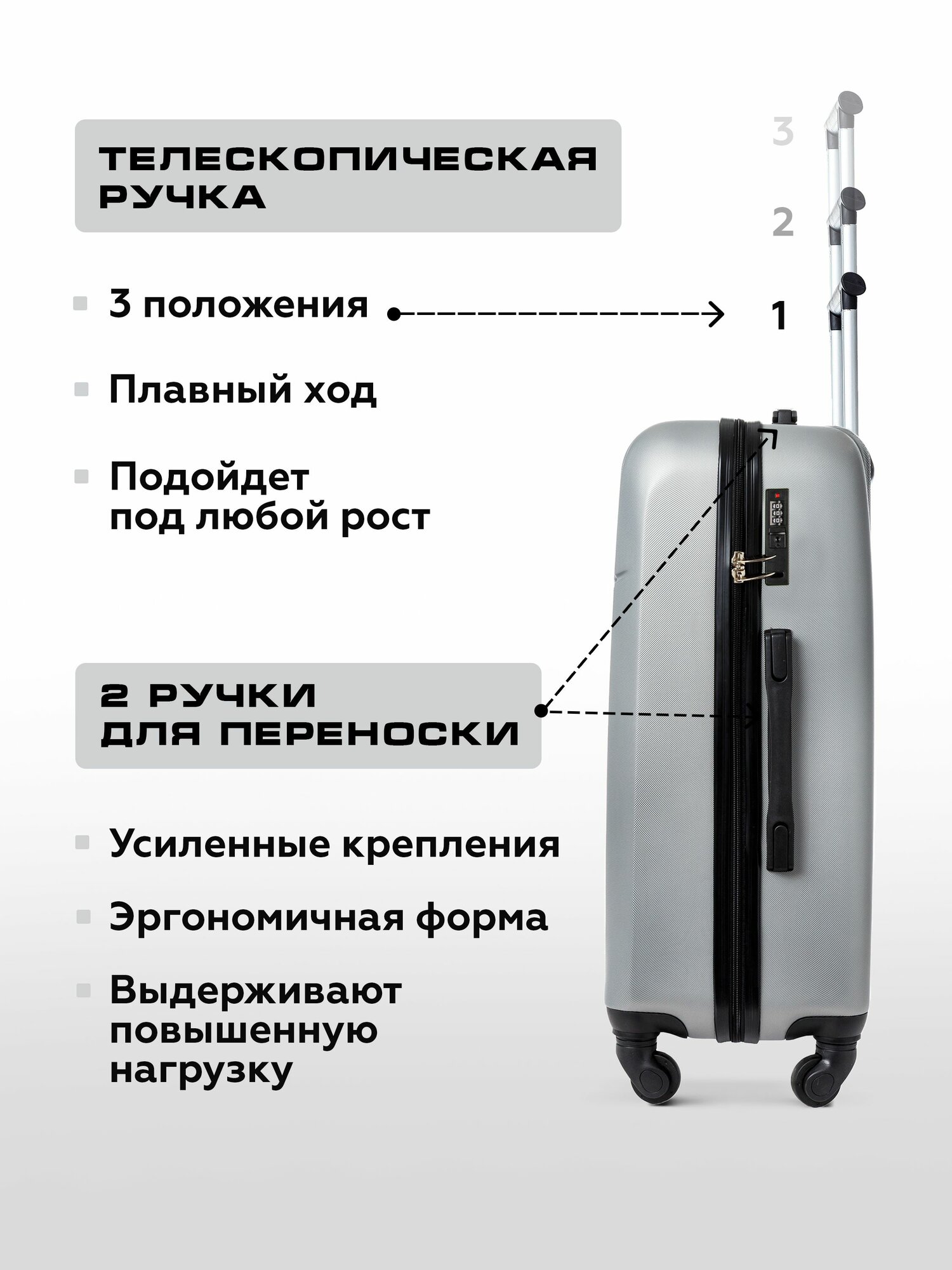 Чемодан на колесах M серебряный Bonle, премиум ABS-пластик 65 см, 62 л, средний дорожный 4 871 ₽