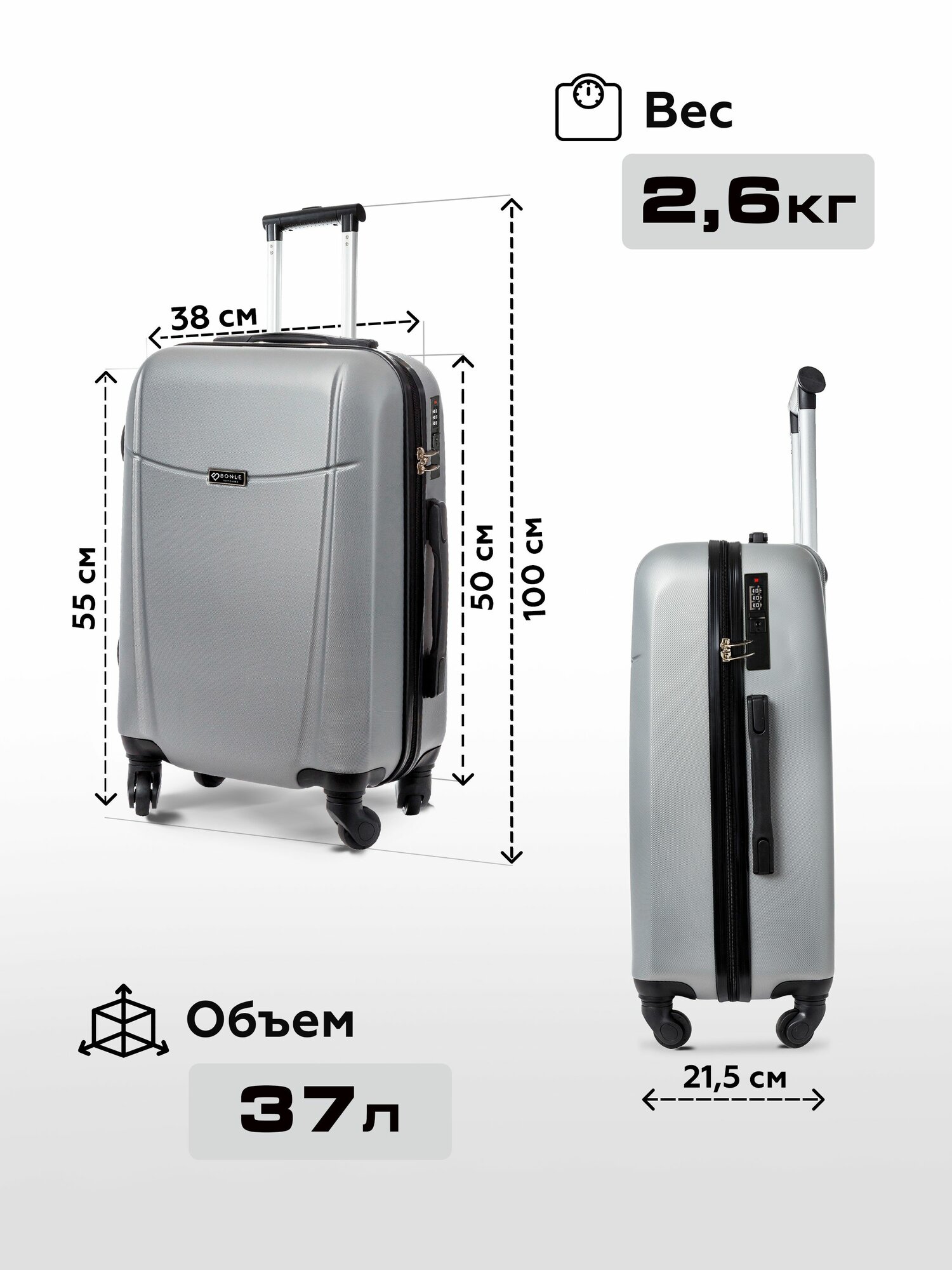 Чемодан на колесах ручная кладь серый Bonle, премиум ABS-пластик, размер S, 55 см, 33 л, дорожный, маленький, детский 7 350 ₽