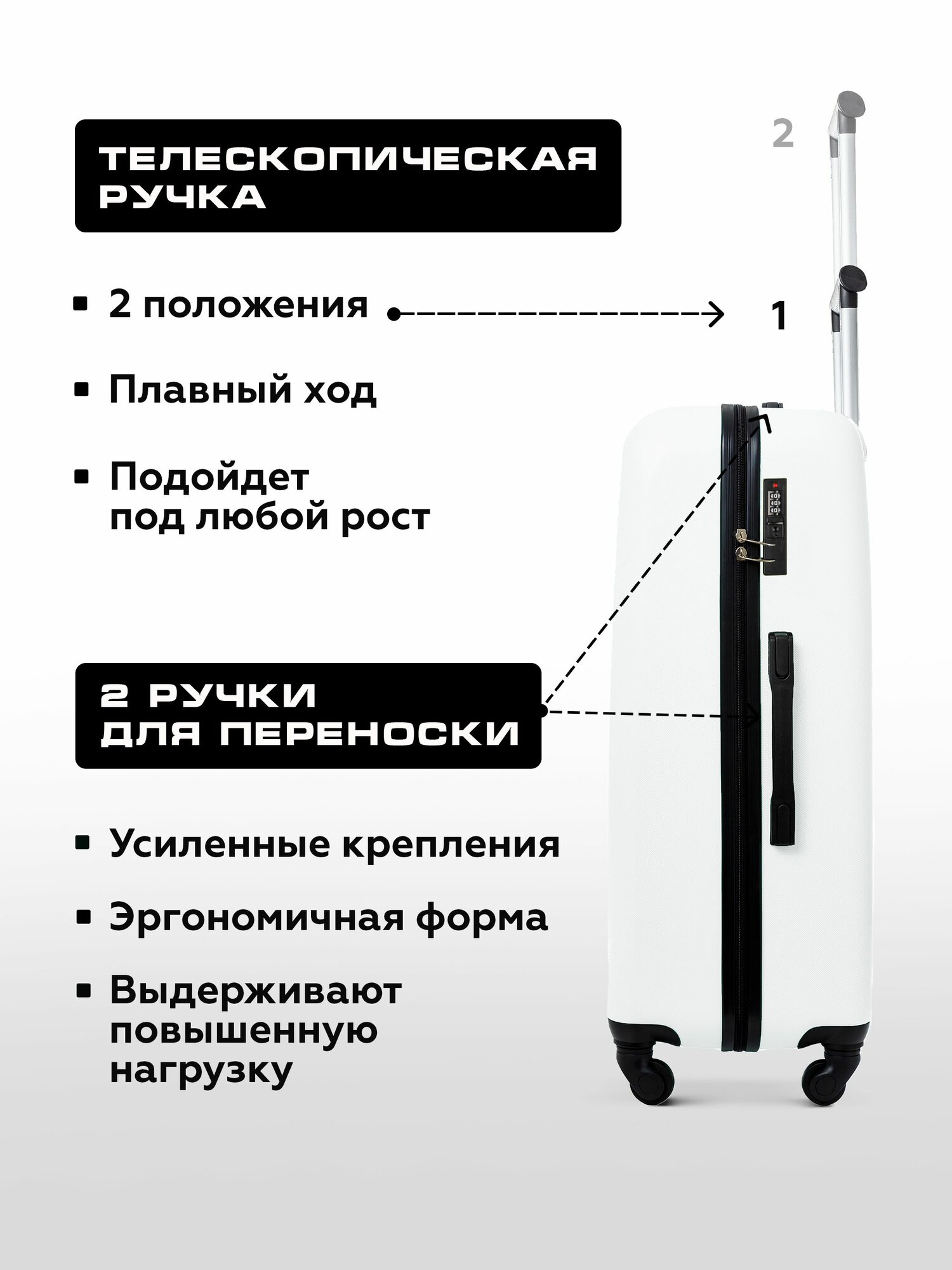 Чемодан на колесах M белый Bonle, премиум ABS-пластик 66,5 см, 62 л, средний дорожный информация: