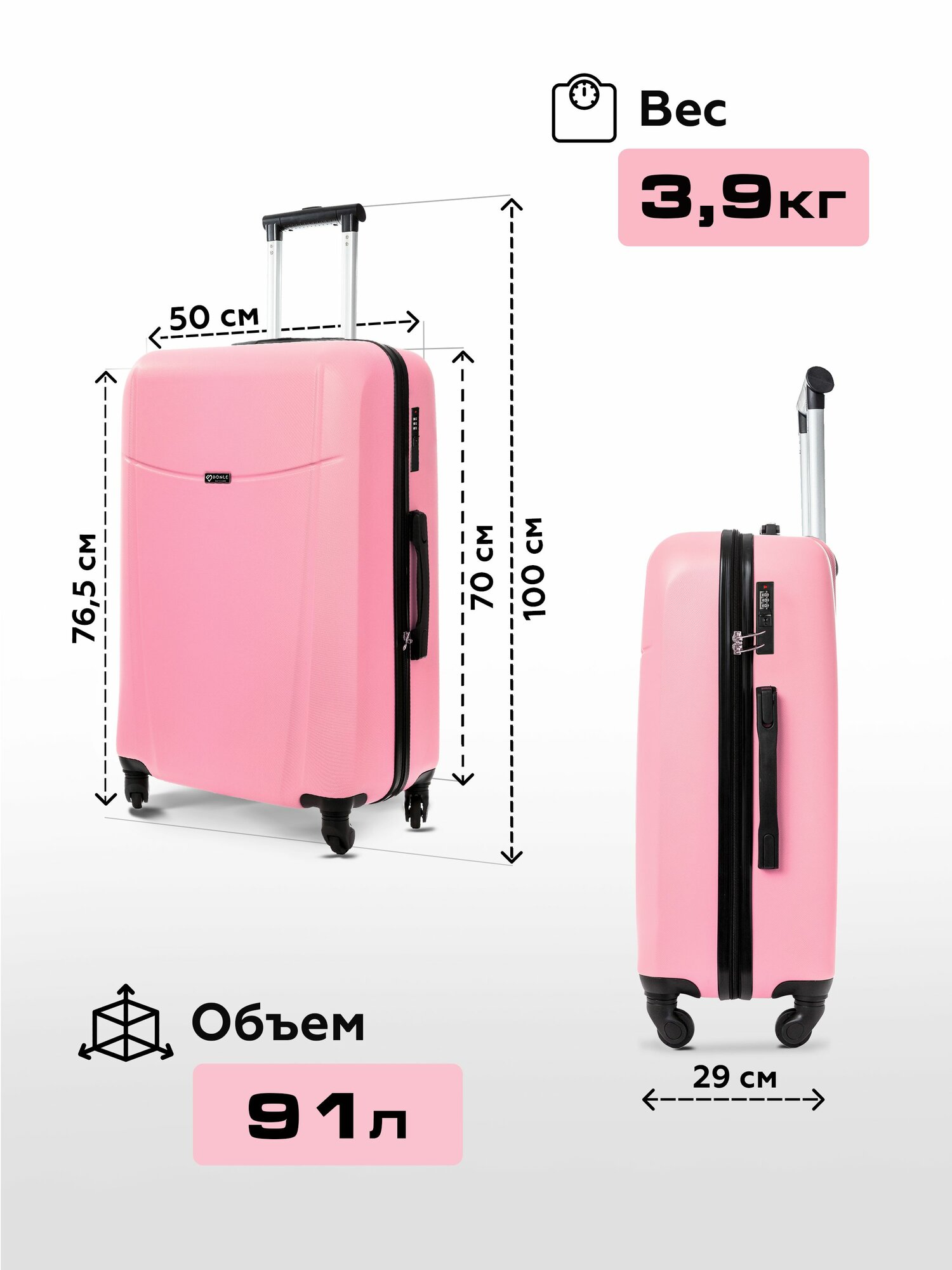 Чемодан на колесах L нежно-розовый Bonle, премиум ABS-пластик 75,5 см, 91 л, большой дорожный 6 259 ₽
