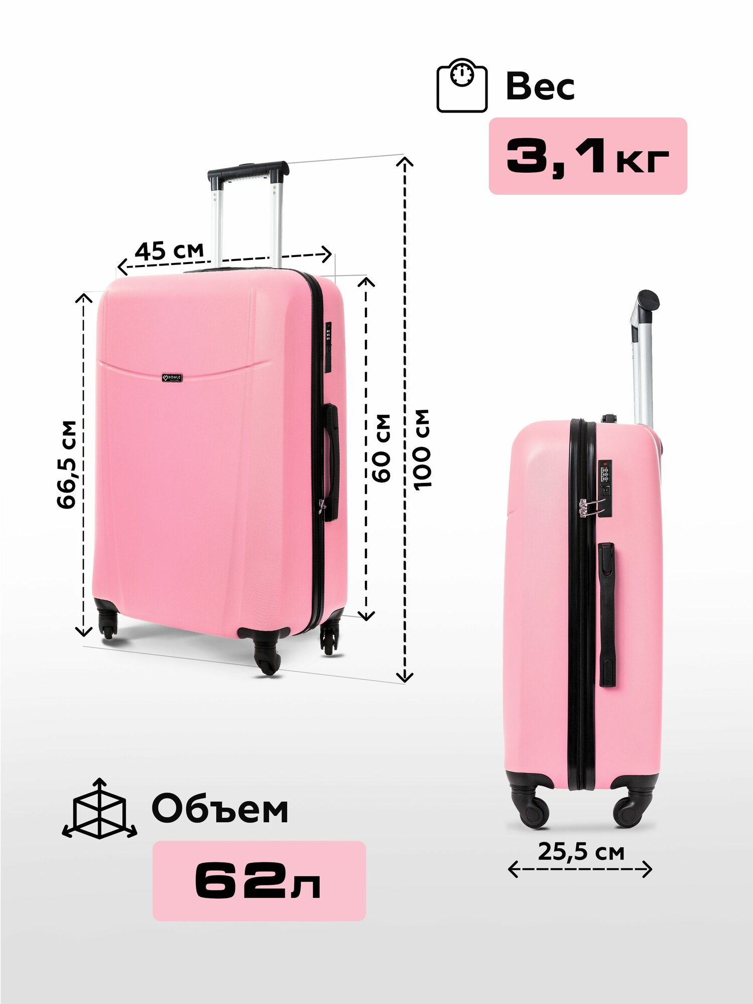 Чемодан на колесах M нежно-розовый Bonle, премиум ABS-пластик 65 см, 62 л, средний дорожный 5 843 ₽