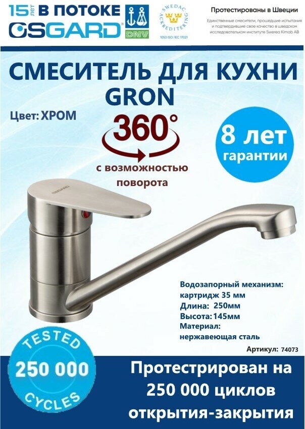 Osgard Смеситель Osgard 74073 Gron для кухни, никель информация: