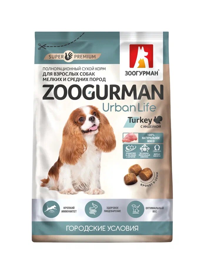 ZOOGURMAN URBAN LIFE для взрослых собак маленьких и средних пород с индейкой (1,2 кг) 841 ₽