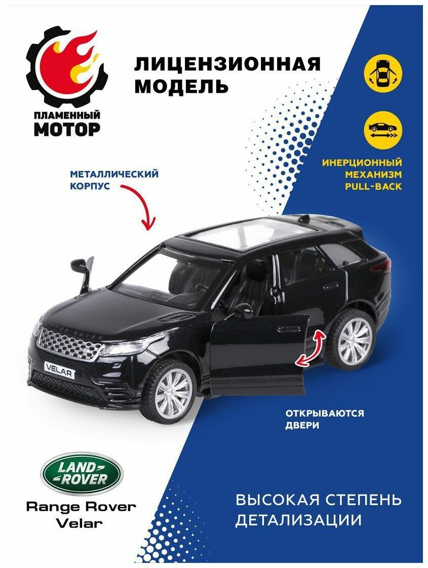 Машина металлическая инерционная 1:42 Land Rover Range Rover Velar, открывающиеся двери, 12 см, черный Пламенный мотор 870403