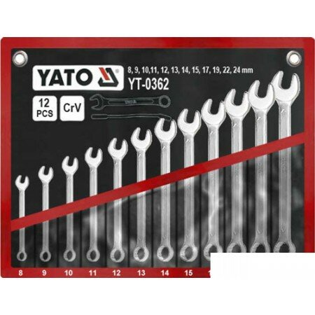 Набор ключей комбинированных 12 пр: 8-15, 17, 19, 22, 24 мм, на полотне YATO YT-0362 | цена за 1 шт | минимальный заказ 1