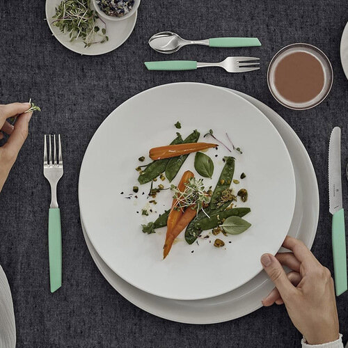 Набор из 12 столовых принадлежностей VICTORINOX Swiss Modern: 6 столовых ножей с волнистым лезвием 11 см, 6 столовых вилок 20,5 см, мятно-зелёный 6.9096.11W41.12