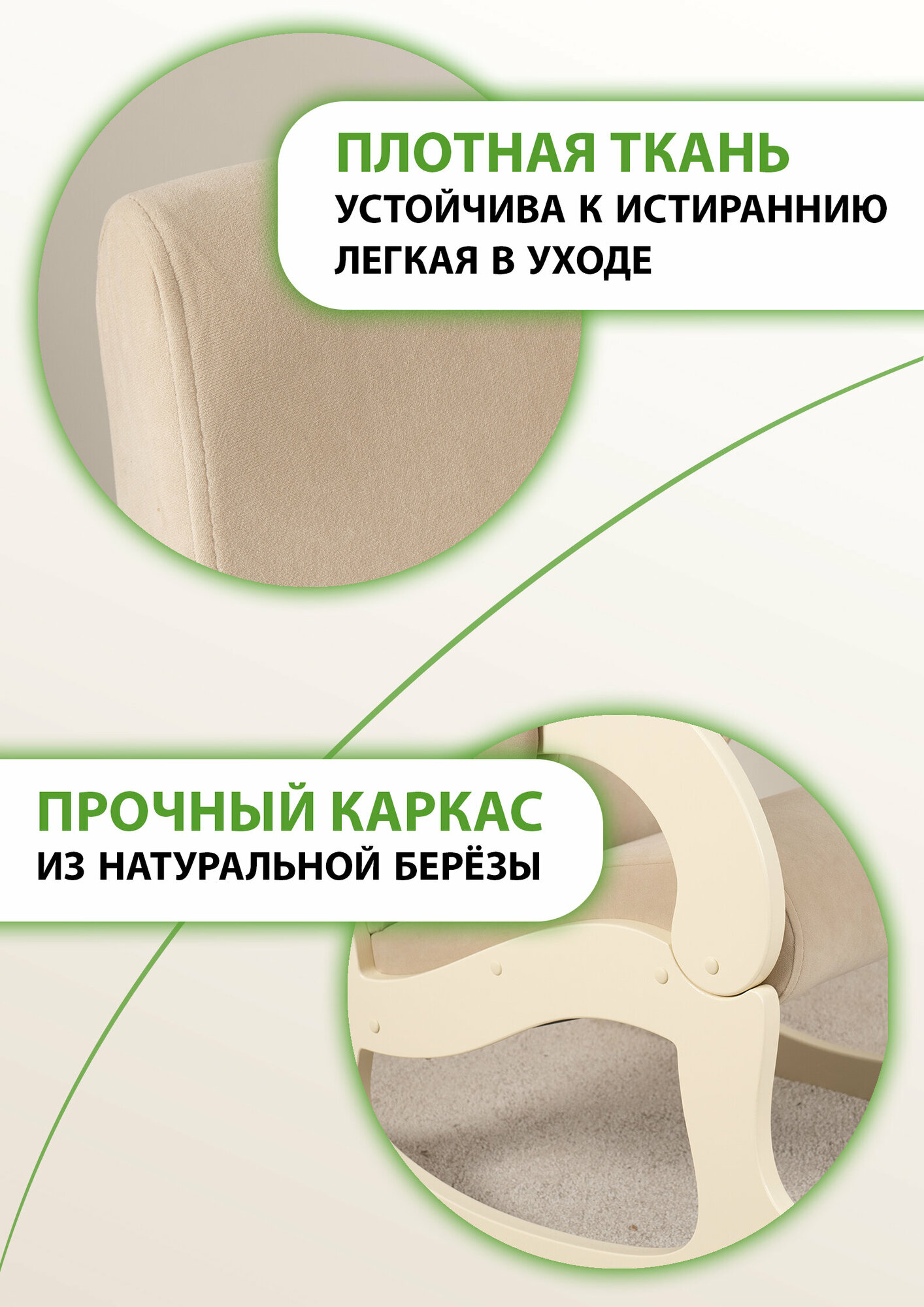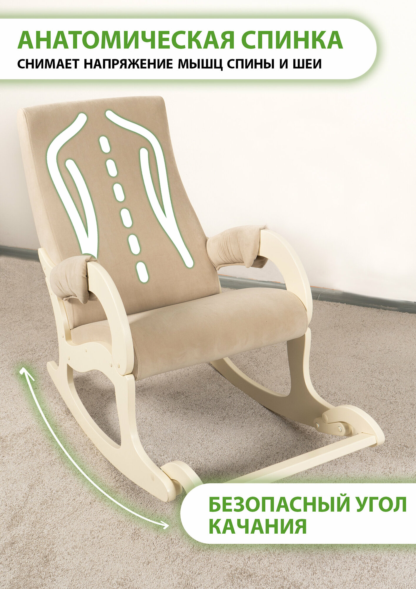 Кресло-качалка с подножкой для дома и дачи Glider Аоста М в ткани Микровелюр, цвет бежевый информация: