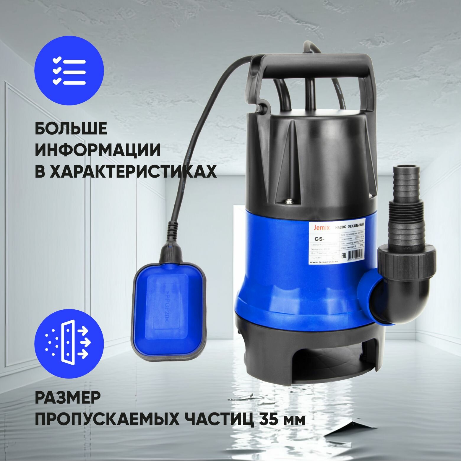 Насос фекальный JEMIX GS-550, 550 Вт, напор 7 м, 175 л/мин, диаметр всасываемых частиц 35 мм