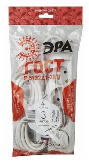 Удлинитель ЭРА U-4es-3m (белый) информация: