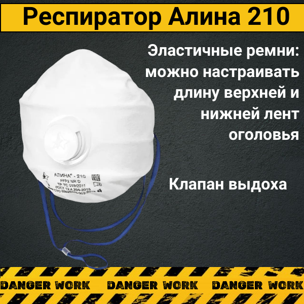 Респиратор - Маска Алина 210 с клапаном выдоха FFP2 NR D, 1 шт 46 ₽