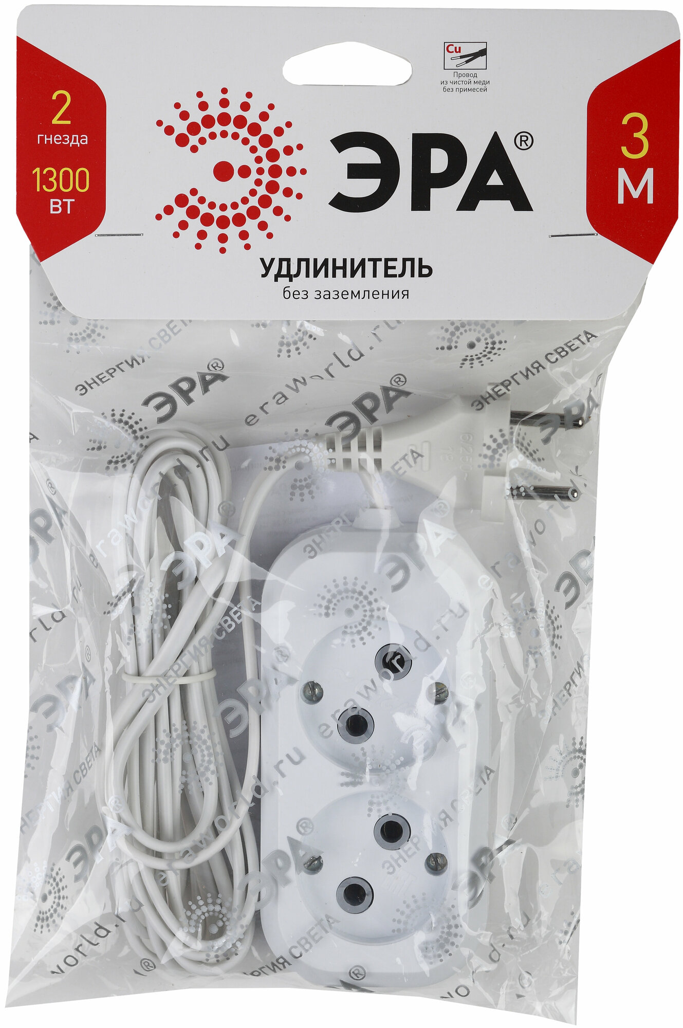 10 цен на ЭРА UX-2-3m ЭРА Удлин-ль без заземл, 2x0.75мм2, ШВВП, 2гн, 3м (5/20/960)