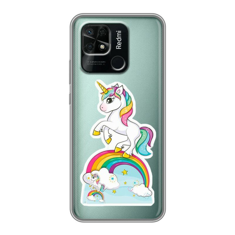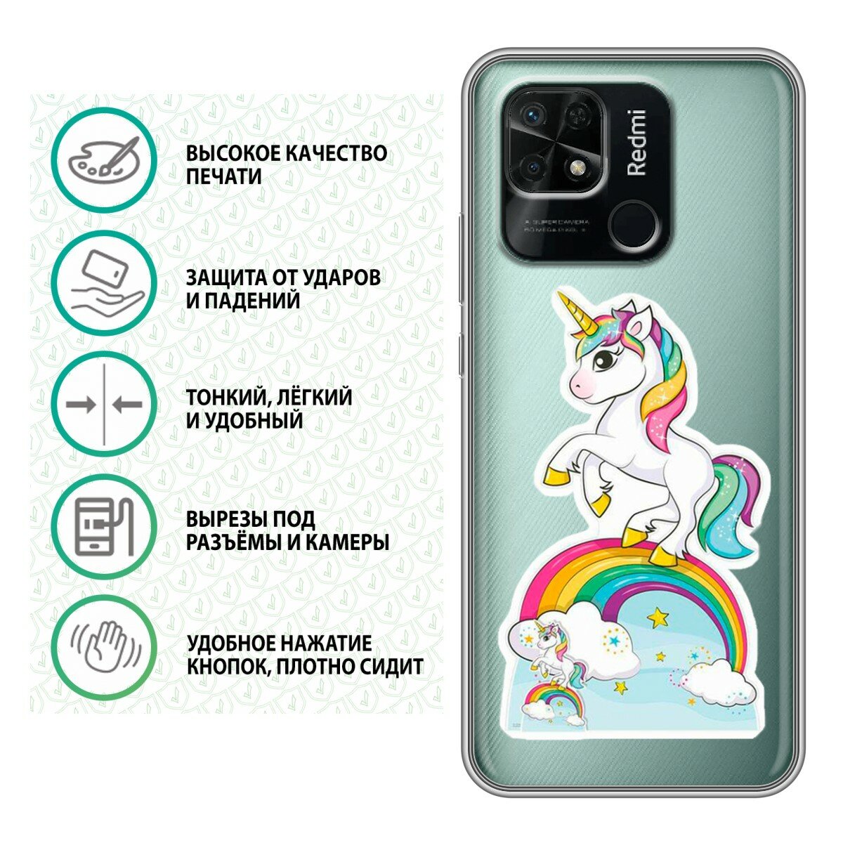 Полупрозрачный дизайнерский силиконовый чехол для Редми 10C / Xiaomi Redmi 10C Единорог и радуга информация: