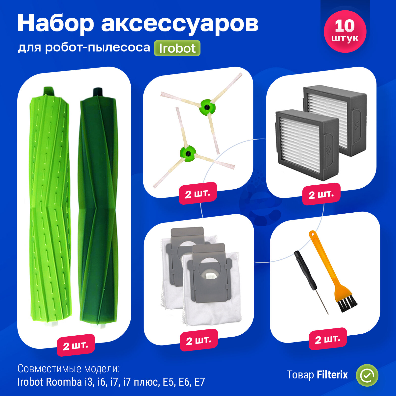 Комплект фильтров мешков и щеток для робота пылесоса Irobot Roomba i3, i6, i7, i7 плюс, E5, E6, E7 информация: