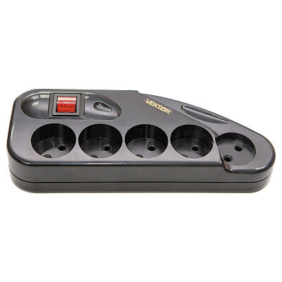 Сетевой фильтр VEKTOR Z, 5 розеток, с/з, 16А / 3500 Вт черный 3 м