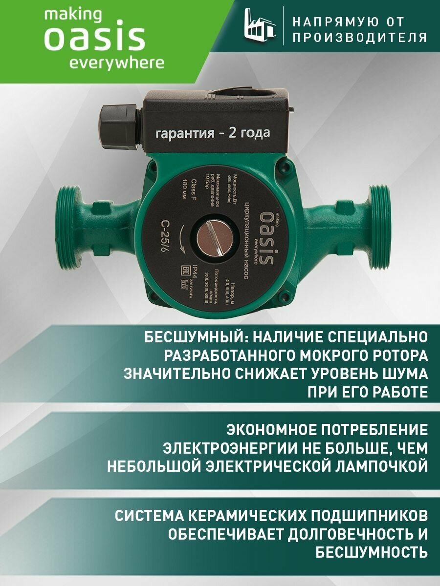Насос циркуляционный для отопления making Oasis everywhere C-25/6, 90 Вт, напор 6 м, 40 л/мин информация: