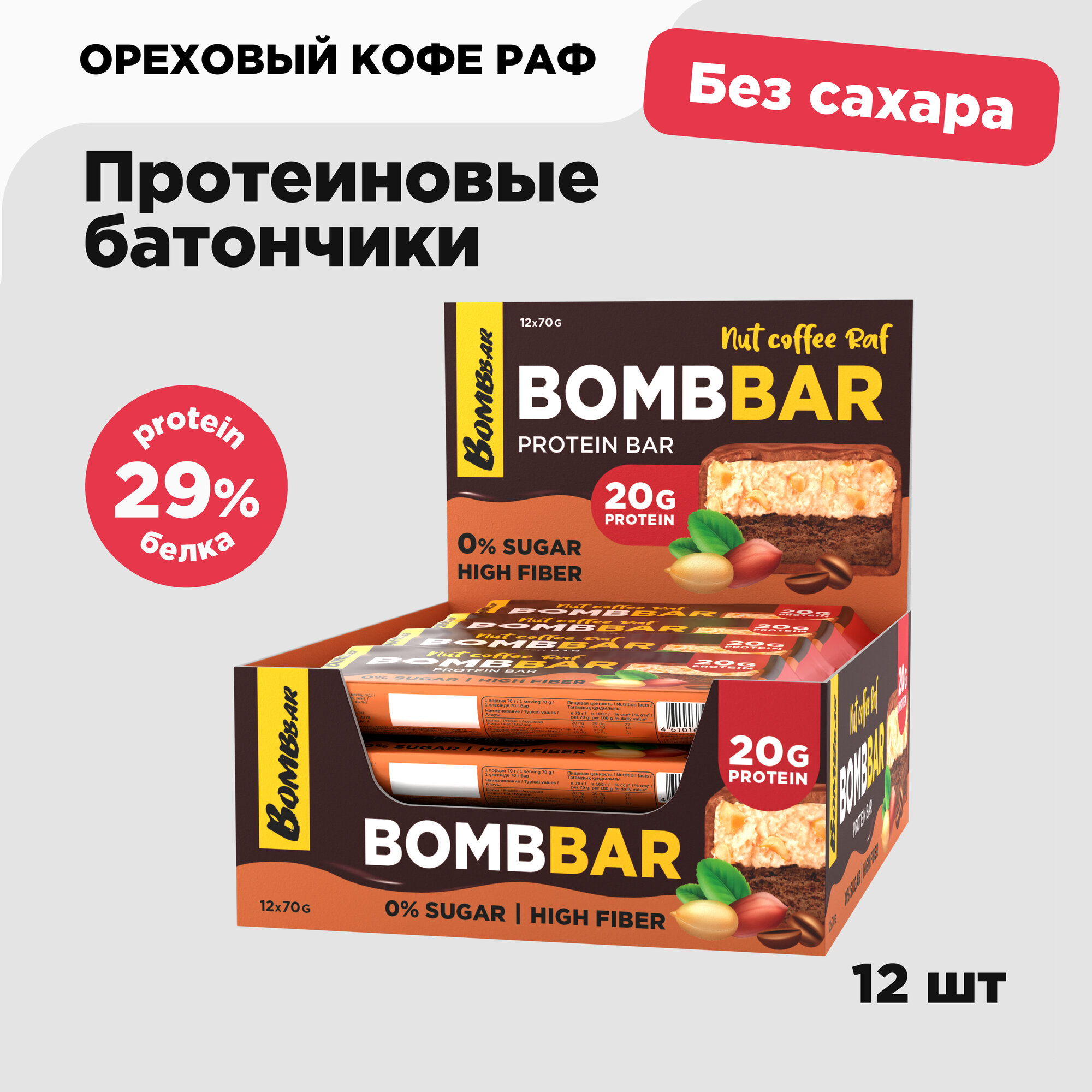10 цен на Bombbar Протеиновые батончики в шоколаде без сахара "Ореховый Кофе Раф", 12шт х 70г