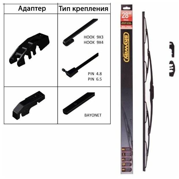 Щетка стеклоочистителя каркасная SKYWAY 70см/28", SK-700 информация: