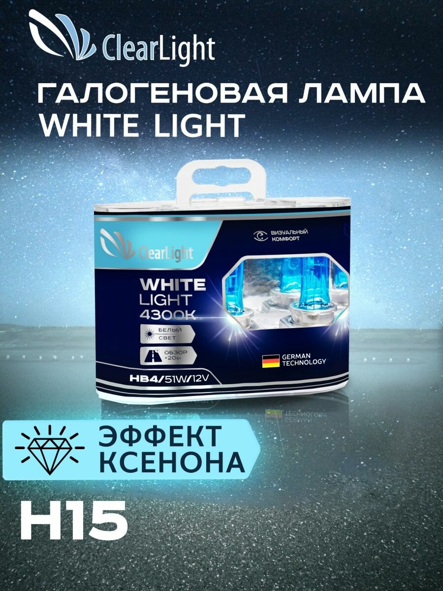 Галогенные автолампы Clearlight H15 WhiteLight 4300K, 2 шт 1 171 ₽