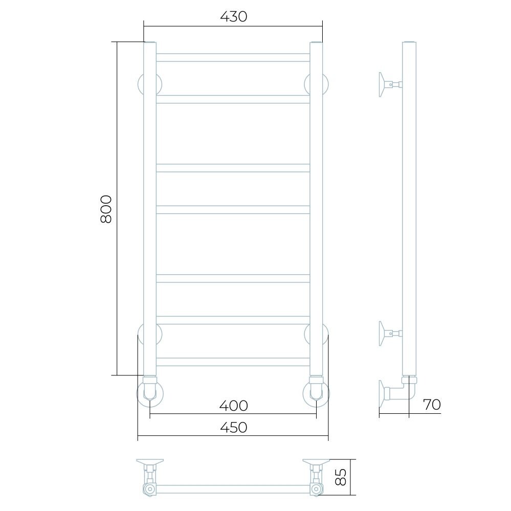 Полотенцесушитель Водяной узкий с полкой Di Kron, модель Premium-T 800х400 боковое подключение 50 см слева угловое