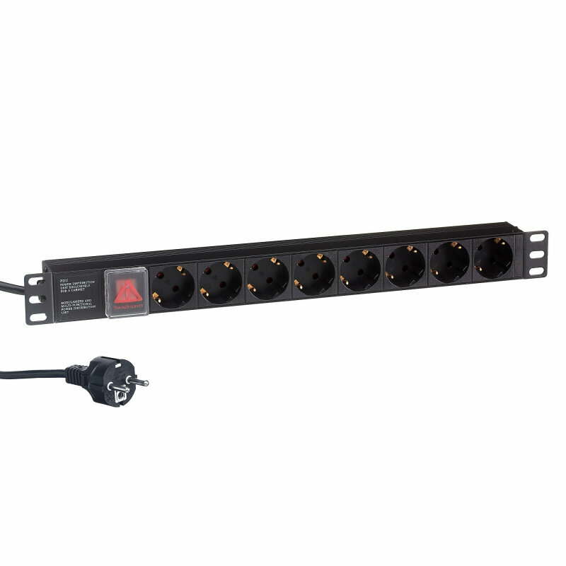 EXEGATE EX280843RUS Блок розеток ServerPro PDU-19H804 Al-8S-EU2.5-SW, 19",1U,алюм, 8Schuko, евровилка, 2.5м