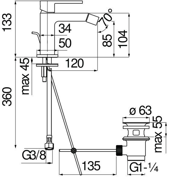 Смеситель Nobili Up UP94119/1CR для биде с донным клапаном 9 760 ₽