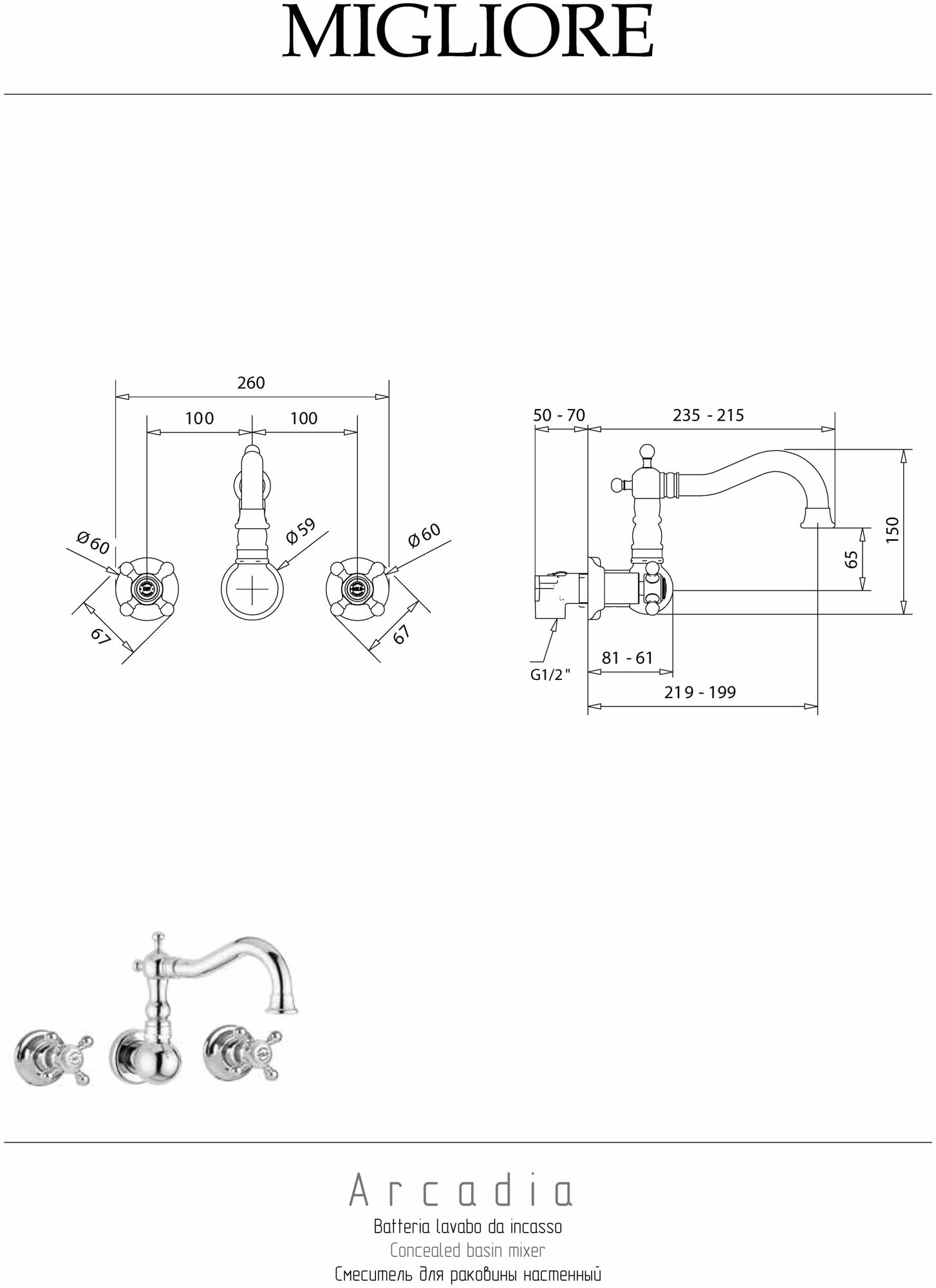 Migliore ARCADIA Смеситель для раковины скрытого монтажа настенный, хром 18391 информация: