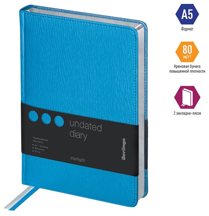 Ежедневник недатированный Berlingo A5, 160 листов, кожзам, "Starlight", серебряный срез, голубой (UD0_83501) 942 ₽