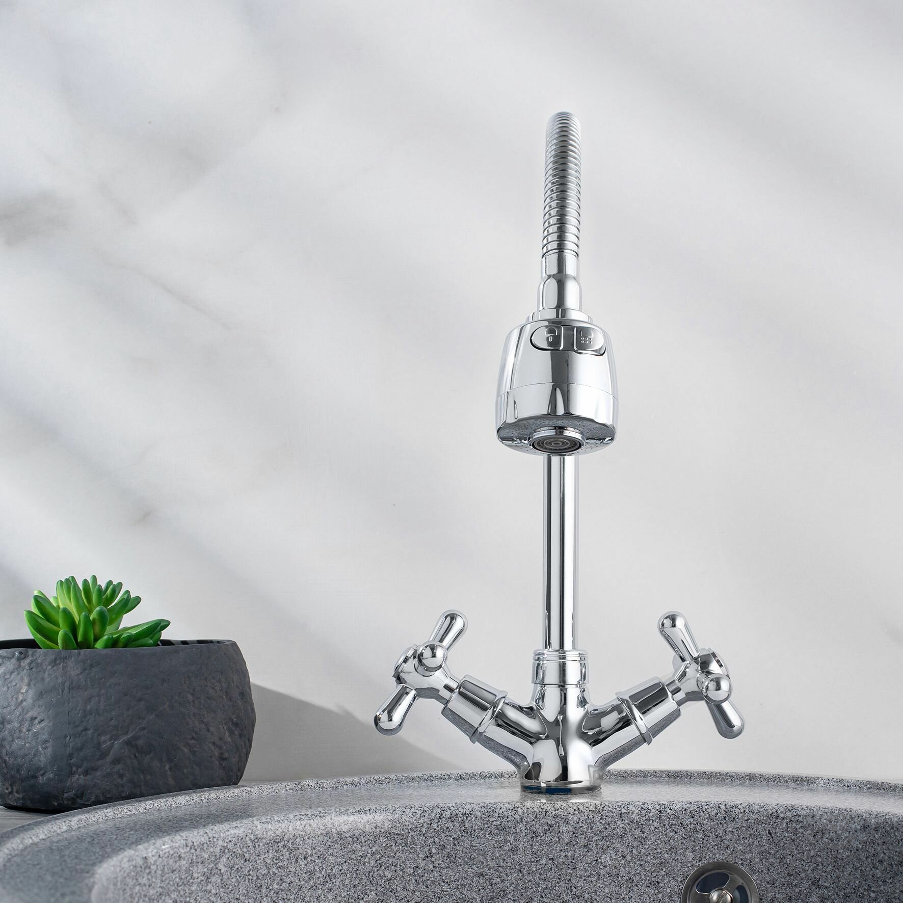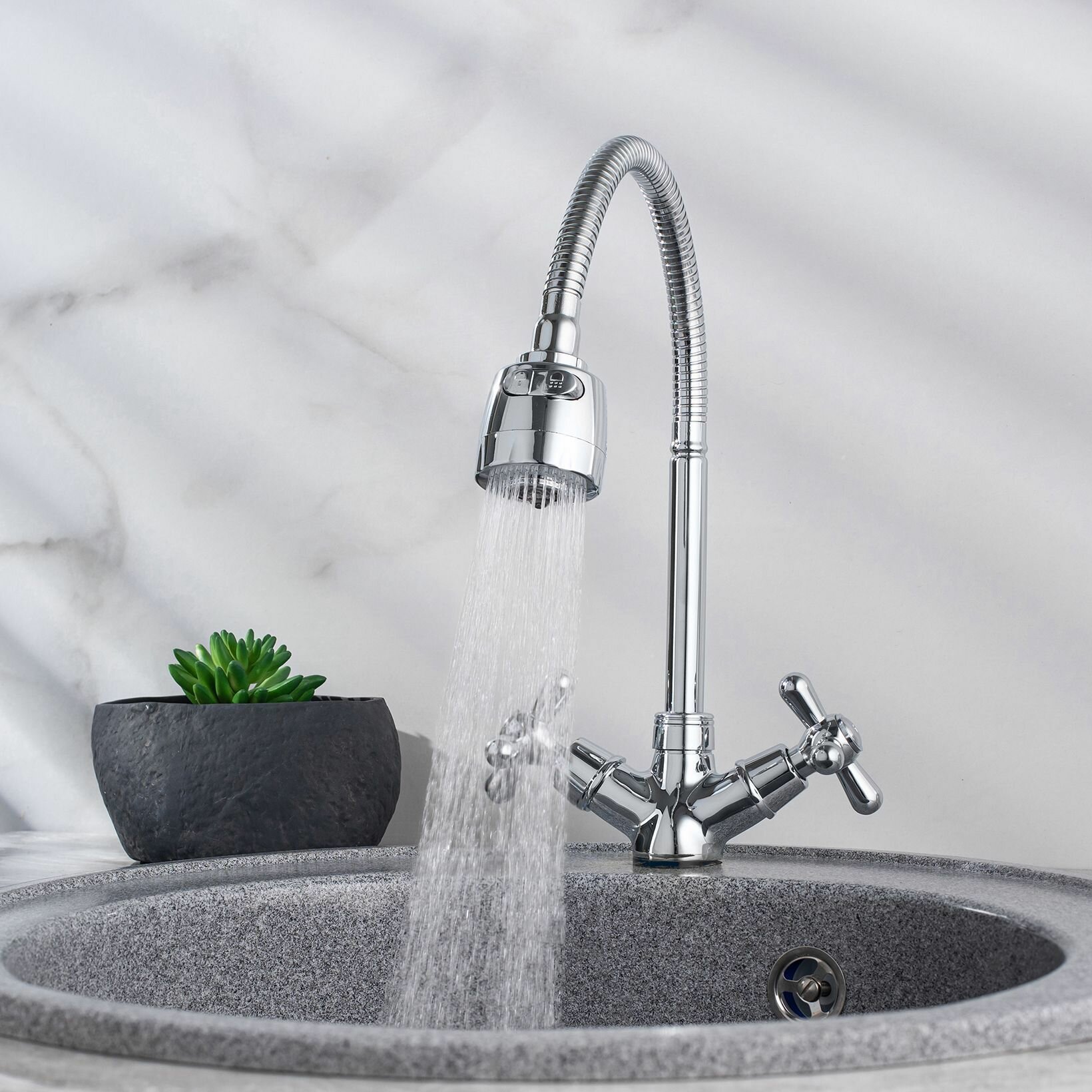 Смеситель для кухни, РМС SL129-279F, латунь, гибкий излив, с насадкой, двухвентильный 2 850 ₽