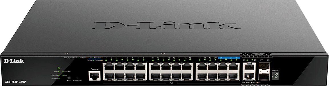 Коммутатор D-Link DGS-1520-28MP/A1A (L3) 24x1Гбит/с 2x10Гбит/с 4x2.5Гбит/с 2SFP+ 24PoE+ 370W управляемый информация: