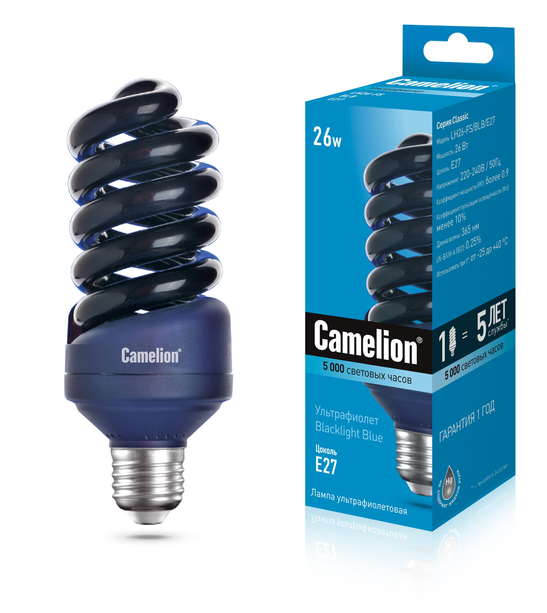 Энергосберегающая лампа Camelion LH26-FS/BLB/E27 ультрафиолетовая