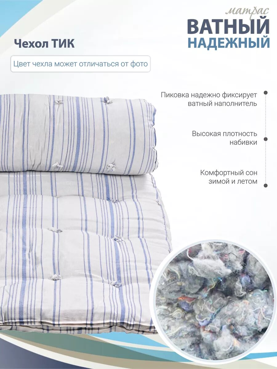 Матрас ватный Гарантия Уюта РВ Надёжный, чехол тик, 70*200, толщина 8 см, 1 714 ₽