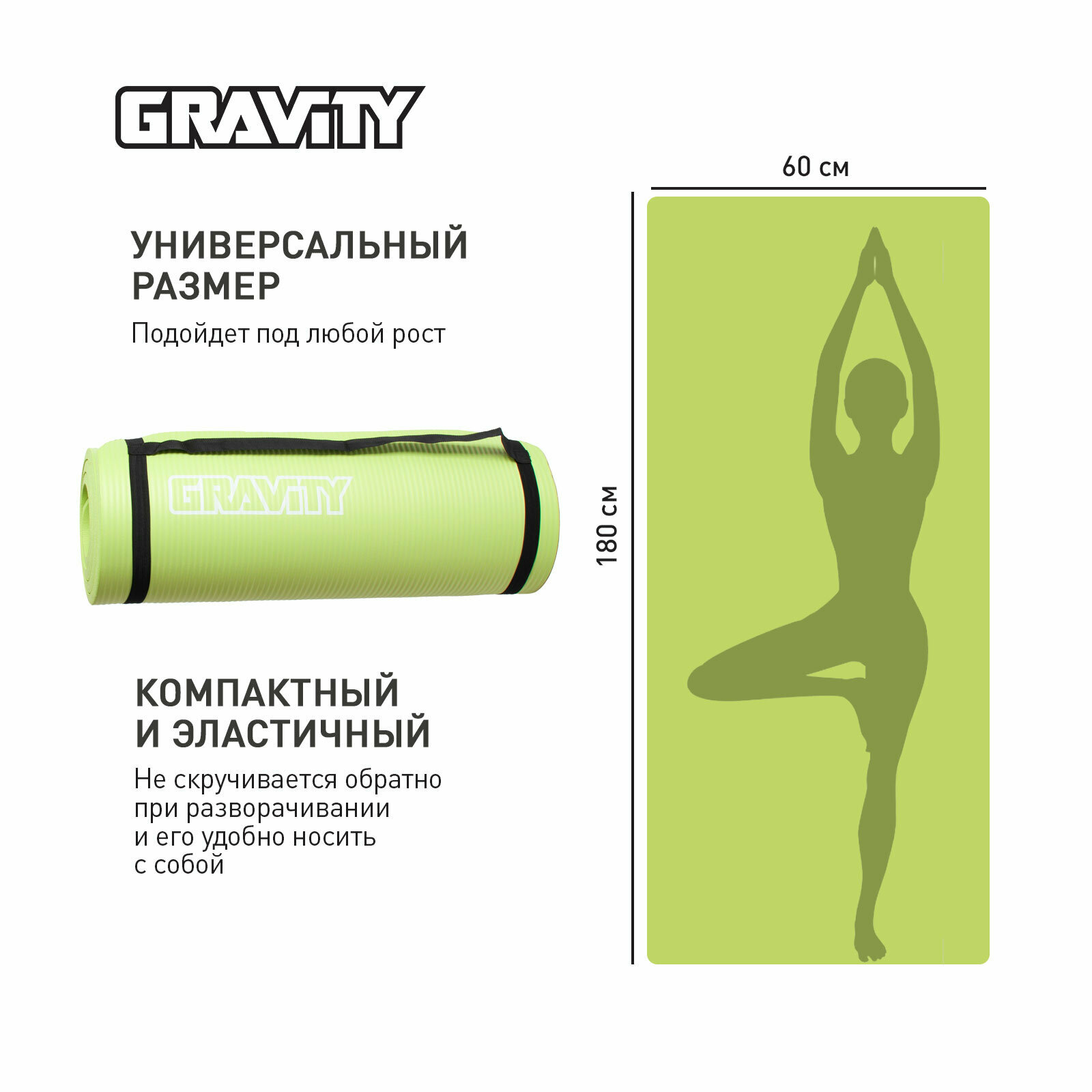 10 цен на Коврик для фитнеса Gravity 180х60х1,5 фисташковый